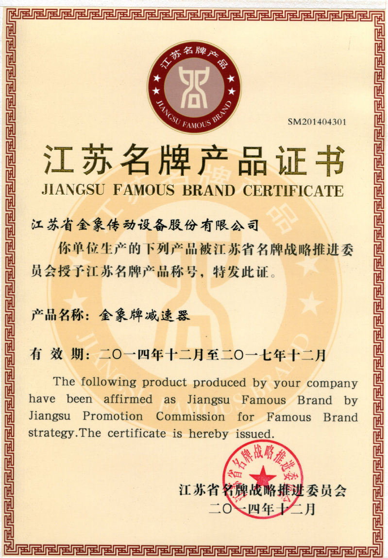 金象品牌獲得中國馳名商標、江蘇省著名商標、江蘇省名牌產品等稱號。公司先后獲得國家火炬計劃高新技術企業、江蘇省高新技術企業、江蘇省創新型企業等稱號。