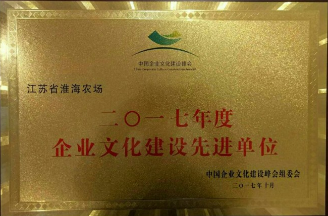 淮海農場多年以來實施的“文化陶治工程”,助推了農場文化氛圍的進一步拓展,豐富了職工居民的精神文化生活。農場2015年獲得全國“模范職工之家”牌匾,2016年獲得國家“職工書屋”榮譽,2017年又獲得中國2017年底企業文化建設“先進單位”稱號。