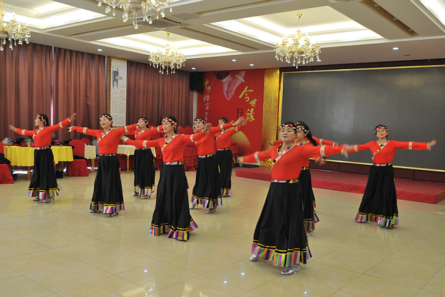如今經(jīng)過多場賽事考驗的農(nóng)場本土教練,又產(chǎn)生了把農(nóng)場退休舞蹈隊員們風采拍下并上傳上網(wǎng)的想法。這一想法迅速得到了廣大姐妹們的贊同,并迅速組織排練、磨合和提高工作,于是就出現(xiàn)了開頭的那一幕。圖為農(nóng)場老年舞蹈隊員們在精心排練哈噠舞時的鏡頭。