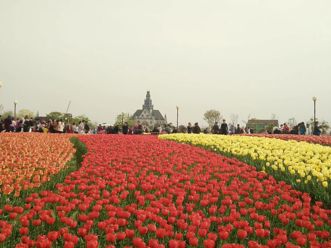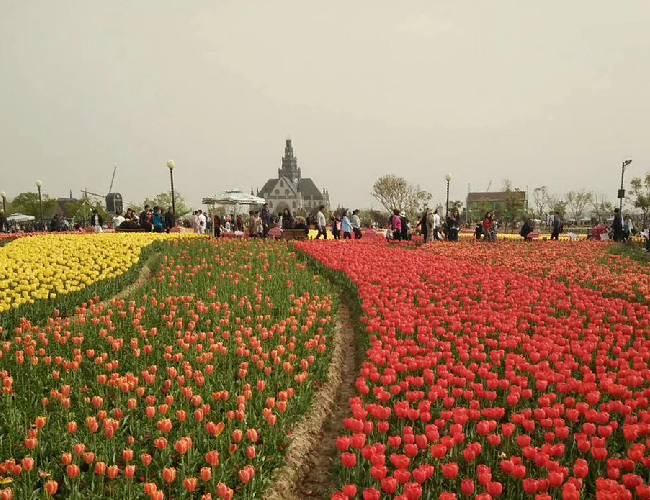 域外的風(fēng)車、郁金香和來自全國各地超高的人氣,特別是那種紅、黃、白、褐、紫、橙等多種花色在春風(fēng)中搖曳,或交織而行,或獨立成簇,或在高低起伏的土丘上隨意地流淌,宛如天上瑰麗的云彩,又像仙女們織出的緞綢,令人感到流光溢彩又精彩絕倫,看了花海就使心情更加愉悅起來,花海中的荷風(fēng)半島、水岸印象、多彩秀湖、智能莊園的荷蘭風(fēng)格元素,在美侖美奐又色彩斑斕郁金香的襯托下,恍若置身在荷蘭國度的感覺。