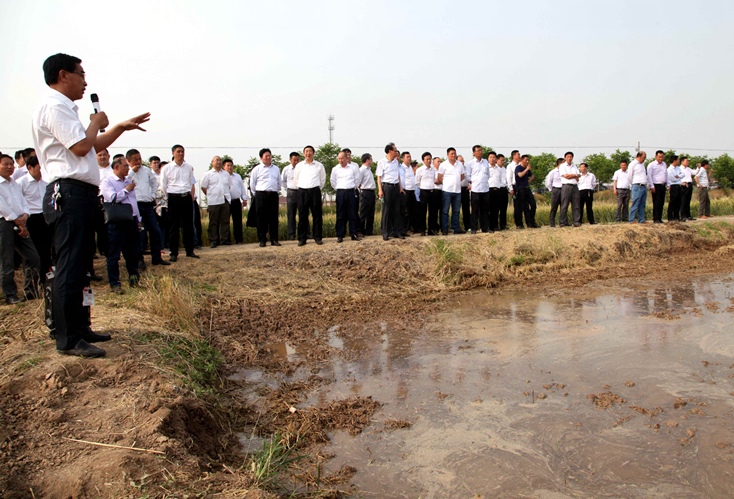 會后,胡兆輝、蘇志富率與會人員觀摩了黃海分公司農(nóng)業(yè)生產(chǎn),對黃海分公司農(nóng)機農(nóng)藝融合新技術(shù)的應(yīng)用給予高度贊賞。