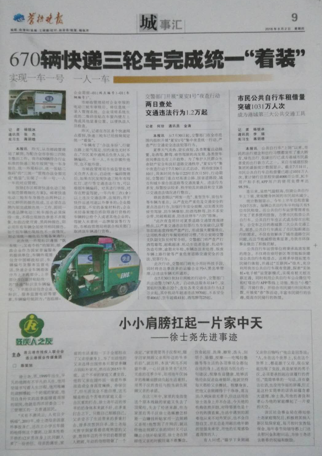 8月2日,《蒼梧晚報》刊登了《小小肩膀扛起一片家中天》的新聞報道,主要講述了東辛農場西洋社區居委會居民徐士堯用稚嫩的肩膀撐起了一個坍塌的家庭,用自身樸實的故事溫暖著周圍居民的先進事跡。