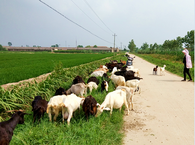 淮海農(nóng)場(chǎng)四分場(chǎng)社區(qū)三十大隊(duì)養(yǎng)殖戶(hù)曹正紅瞄準(zhǔn)市場(chǎng)上養(yǎng)殖山羊可快速致富的有利時(shí)機(jī),利用農(nóng)場(chǎng)社區(qū)農(nóng)田溝河灘地多的優(yōu)勢(shì),通過(guò)滾雪球式的自繁自育和看護(hù)散放的低成本做起,連續(xù)多年養(yǎng)殖波爾山羊,并且每年的養(yǎng)殖規(guī)模控制在適合一人管護(hù)的100頭左右。由于曹正紅一直以來(lái)堅(jiān)持人工看護(hù)、戶(hù)外散養(yǎng),以飼喂青草為主,養(yǎng)殖的山羊不但膘肥體壯,野味足,相應(yīng)食用口感好。每年曹正紅除能繁母羊、配種公羊和幼羊外,其余的均被熟識(shí)的周邊客戶(hù)和飯店訂購(gòu)一空,走出了一條特色養(yǎng)殖和勤勞致富的新路子。圖為曹正紅的家人正在路旁散放山羊時(shí)的鏡頭。