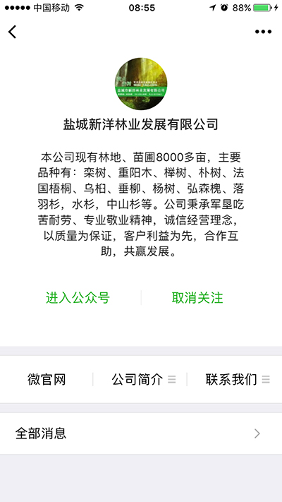 “你好,歡迎關注新洋林業有限公司!”日前,“鹽城市新洋林業有限公司”微信公眾號正式上線。