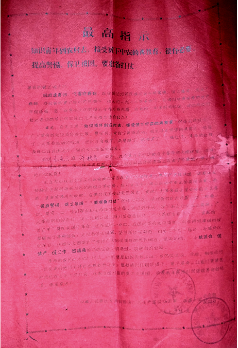 革命的家長(zhǎng)同志們!過(guò)去,你們?cè)侵R(shí)青年上山下鄉(xiāng)的促進(jìn)派。今后,相信你們一定會(huì)更好地用毛澤東思想教育子女,鼓勵(lì)他們?cè)鴪F(tuán)干一輩子革命。讓我們更緊密地團(tuán)結(jié)在以毛主席為首、林副主席為副的黨中央周圍,沿著毛主席指引的繼續(xù)革命的航道,奮勇前進(jìn)。