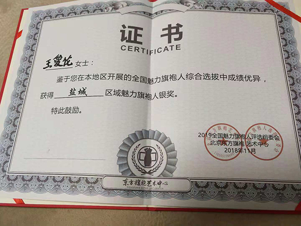 日前,新洋農場有限公司王愛倫榮獲2018年全國魅力旗袍人綜合選拔(鹽城賽區)銀獎。王愛倫是農場公司退休職工,此前,她就經常參加各大選秀節目,率獲佳績。