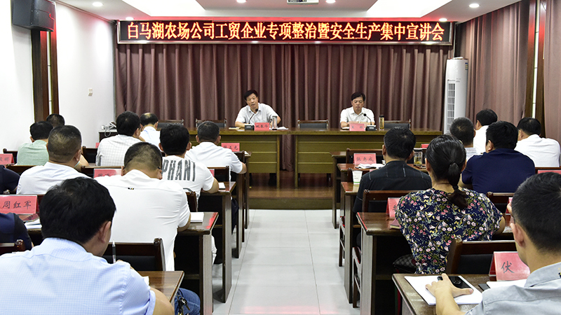 為深入學習貫徹習近平關于安全生產的重要思想和黨中央、國務院決策部署,認真落實省、集團公司和地方政府相關要求,扎實推進安全生產專項整治,保證實現(xiàn)安全生產專項整治重點領域宣傳教育“全覆蓋”,8月27日上午,白馬湖農場公司召開工貿企業(yè)專項整治專題部署暨安全生產集中宣講會,由黨委書記姚春華作安全生產專題宣講,并邀請淮安區(qū)應急管理局副局長陳華昌作安全生產專項整治專題部署。