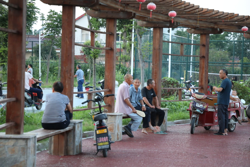 廊架下的“家常理短”。棗紅的廊架,既有著中國傳統(tǒng)因素,又有著古典的雅致,廊架下的長板凳不僅成為鍛煉后人們休息的好地方,也成為大家聊在的好去處。伴著微涼的晚風,三五個人坐在廊架下,嘮嘮嗑,拉拉家常,說著今年的水稻長的怎么樣?你家這次撒了多少肥?我家雇了多少人在田里拔草等等,一天忙碌后的疲勞在這里得到緩解。居民新區(qū)的明大媽每天都會到廊架下坐上一個多小時,退休在家的她,每天在廊架下聽著大家?guī)淼?/span>“新聞”,不僅充實了晚年生活,也打發(fā)了退休后的充足時間,廊架下的“家常理短”已逐漸成為三河人日常生活的一種樂趣。