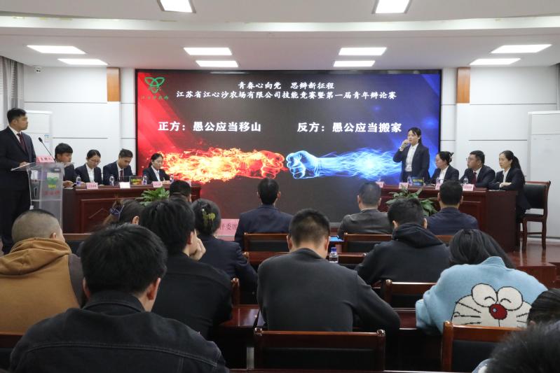 本次比賽的辯題來自于江心沙農場主題教育活動開展過程中發現的問題與矛盾的總結凝練,黨委領導班子成員既是出題人,也是評委,現場觀摩青年職工的表現。