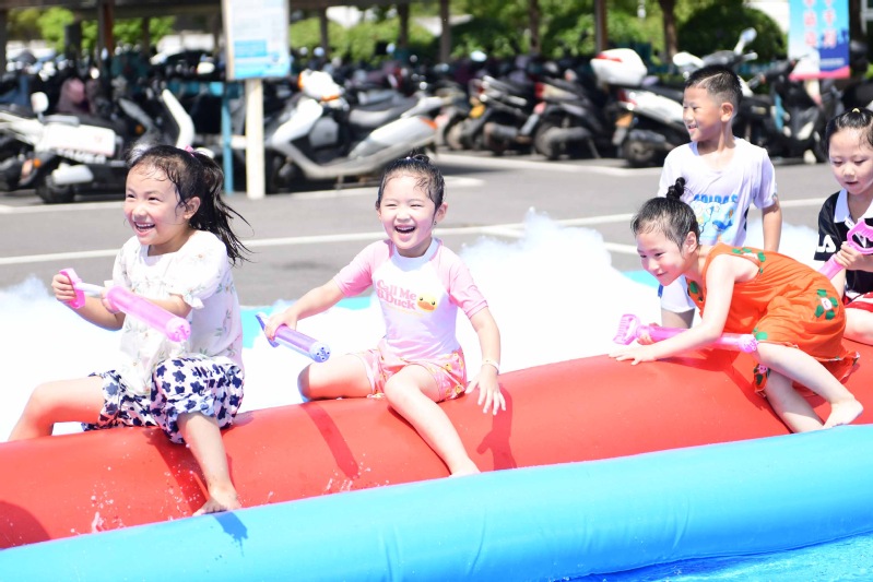 夏末秋初,秋老虎的威力不容小覷。結(jié)合連云港海濱城市特點(diǎn),公司準(zhǔn)備了消暑降溫的泡泡大作戰(zhàn)游戲活動。在一片蔚藍(lán)中,飛揚(yáng)的泡沫與激起的水花見證了孩子們的快樂。