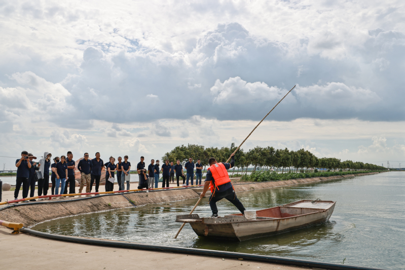“加油!加油!”比賽在撐船選手隊友的吶喊聲中拉開帷幕,飼料投喂、藥品潑灑離不開撐船,這對于養殖者來說是必備技能,只見參賽選手熟練撐船繞過魚塘中的記號點,爭分奪秒與時間賽跑,現場歡呼聲此起彼伏。接下來的“看魚識斤重”項目同樣妙趣橫生,熟練快速識別魚體斤重,對于飼料投喂和銷售計劃的制定、存塘量的測算起到十分重要的作用。在識別藻相項目中驚訝了解到,水產公司不僅僅是技術員,而是所有員工都會這項技能。