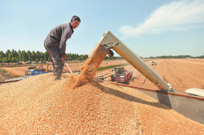 昨日,位于淮安盱眙洪澤湖畔的江蘇農墾三河農場的3.82萬畝小麥開鐮收割。據測產,三河農場今年小麥總產量可達4400萬斤,90%以上將作為優質種子,供應長三角地區及河南等地。通訊員 許昌銀 本報記者 余萍 攝