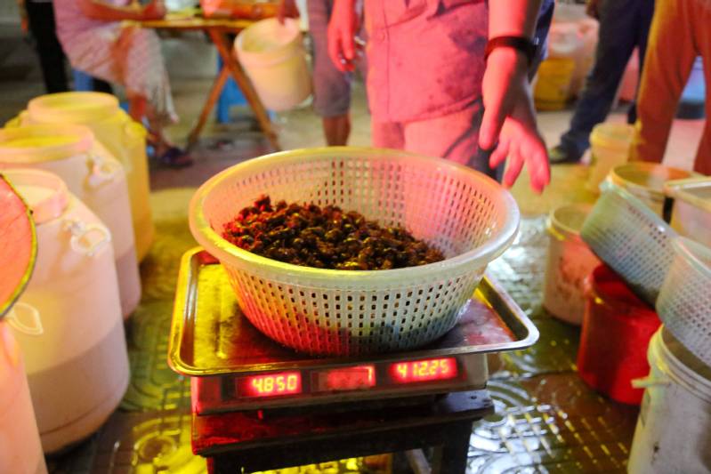 夏夜暑熱退去,新曹農(nóng)場(chǎng)河邊林帶、國(guó)道兩側(cè)、集鎮(zhèn)周邊,小樹(shù)林里經(jīng)常光影搖曳、星星點(diǎn)點(diǎn),人們拿著手電筒等照明裝備仔細(xì)在每棵樹(shù)上尋摸,只為找到獨(dú)屬夏季的舌尖美味——金蟬。老百姓熱衷抓蟬、吃蟬,價(jià)格由最初的每只0.3元到如今的每只1元左右,10年內(nèi)小小金蟬身價(jià)翻了3倍,一躍成為新的致富“頂流”。“金蟬捕捉高峰期能有20多天,一家人一晚可以捉1000多元,每年靠捉金蟬就有近2萬(wàn)元的收益,我們這一個(gè)點(diǎn)一晚收購(gòu)數(shù)量在5000斤以上,平均價(jià)每斤90元以上,年產(chǎn)值900萬(wàn)元。”金蟬收購(gòu)點(diǎn)老板何成剛說(shuō)。