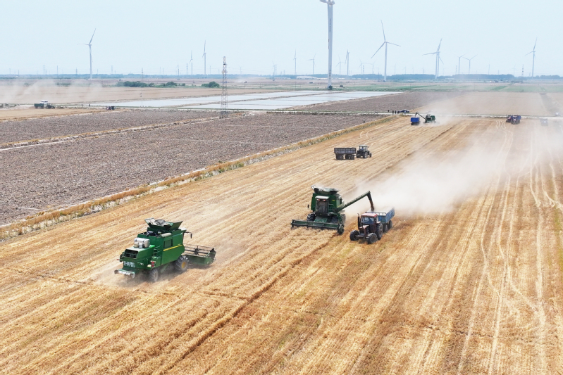 2025年5月29日,鹽城射陽縣江蘇農墾臨海農場順泰生產區麥浪涌動,大型聯合收割機轟鳴作業,率先拉開當地夏收小麥序幕。近年來,農場黨委以墾地合作推動發展,通過技術賦能與鹽堿地改良,昔日鹽堿地蛻變為“噸糧田”,為鄉村振興打造國有農業新樣板。