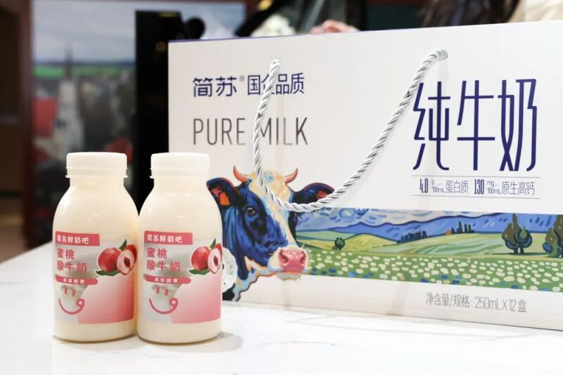 “簡蘇”牛奶以國企品質為基石,以天然營養為核心,憑借“國企自有牧場+極致純凈配方”構建差異化競爭優勢。其中,“簡蘇”4.0純牛奶成為江蘇農墾首批獲“蘇墾優品”品牌授權準入的產品。線下開設“鮮奶吧”門店,銷售現釀酸奶、冰激凌等產品,為消費者帶來全新體驗。積極參加東海水晶市場農產品集市、工業博覽中心展會、海州農貿市場農業大集等商貿活動,讓消費者零距離接觸品牌。同時,還與中山精品酒店嘉年華超市等渠道建立良好合作關系,實現較高復購率,并與康濟大藥房、順豐等開展聯合營銷,拓展線下體驗場景。線上利用新媒體平臺優勢,開設抖音、京東等店鋪直播帶貨,與《快樂向前沖》等熱門IP跨界聯動,打造多個銷售成功案例。此外,還開設微信視頻號進行直播,不斷拓展線上銷售渠道。