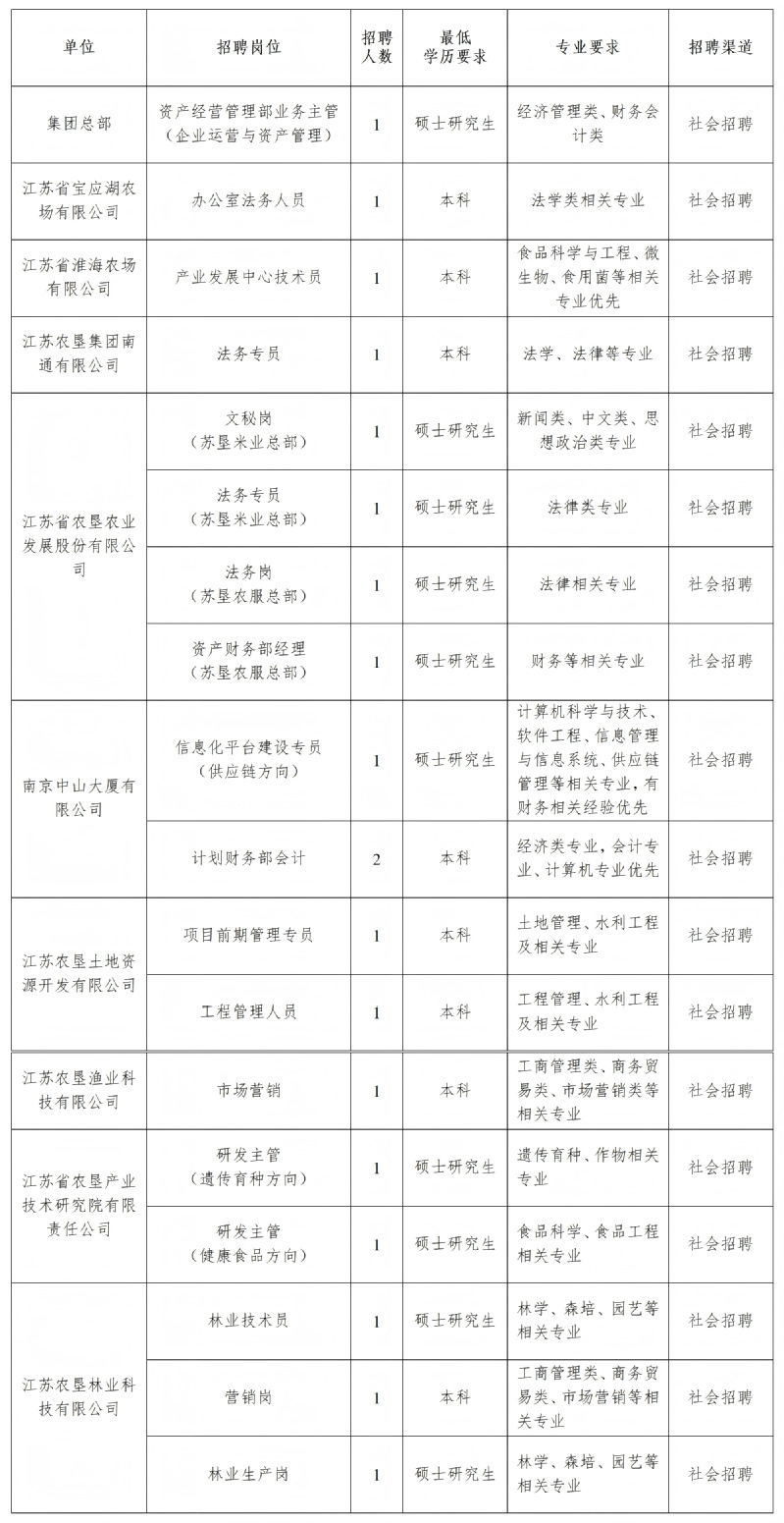 江蘇農(nóng)墾2025年秋季集中招聘公告(一)