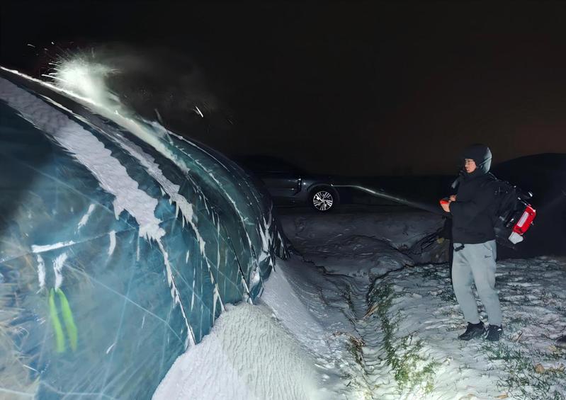 淮海農(nóng)場則構建起“生產(chǎn)防護+民生保障”的全方位防御體系,第一時間傳達學習省農(nóng)業(yè)農(nóng)村廳緊急通知精神,牢固樹立“人民至上、生命至上”理念。在生產(chǎn)端,蘇墾農(nóng)發(fā)淮海分公司重點強化麥苗分類管護,對晚播弱苗和旺長苗采取鎮(zhèn)壓保墑、合理施肥等措施。農(nóng)場則在羊肚菌基地加固大棚并做好積雪清理準備,畜禽養(yǎng)殖區(qū)全面排查水電線路、配備備用發(fā)電機,通過優(yōu)化飼料營養(yǎng)保障畜禽安全越冬。在民生端,同步推進基礎設施防凍,對綠化樹木噴施防凍液、對裸露供水管網(wǎng)進行保溫包裹,特別關注孤寡老人、困難職工等群體,安排專人上門檢查取暖設備、儲備生活用水。目前,農(nóng)場已落實24小時值班制度,成立應急小隊并儲備充足物資,確保一旦發(fā)生險情能夠快速處置。
