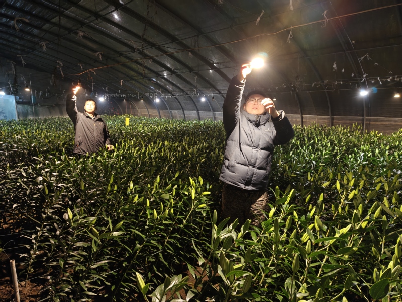 崗埠農(nóng)場則聚焦高效農(nóng)業(yè)示范園作物分類管護,組織人員對所有大棚骨架、保溫棉被進行全面檢修加固,為1.5萬株百合花苗噴施抗逆性葉面肥,對西紅柿苗開展精準打杈、澆水管理,提前準備40余臺套熱風機、水源熱泵等加溫設備,其中31號大棚通過水源熱泵將夜間溫度穩(wěn)定在16.5℃,有效保障作物生長關鍵期需求。