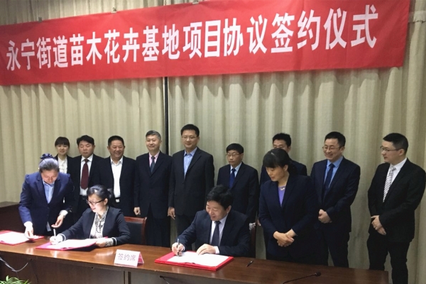 4月17日,集團黨委委員、蘇墾農發股份公司總裁、蘇墾園藝董事長蘇志富一行前往南京市浦口區參加蘇墾園藝永寧街道苗木花卉基地項目簽約儀式并致辭。  簽約儀式上,蘇志富對永寧街道各級領導給予基地項目的關