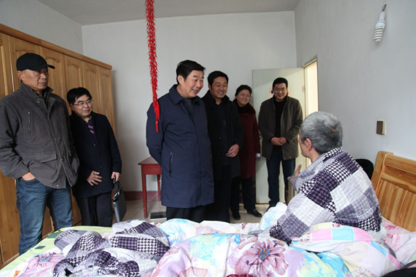 2月9日,集團公司黨委書記、董事長魏紅軍,工會主席佟曉廷一行赴海安農場,慰問困難職工,把集團公司黨委的關懷送到困難職工家中?! ∥簳浺恍惺紫葋淼娇姑涝蠎鹗?、農場退休工人仲兆來老人家。當得知老