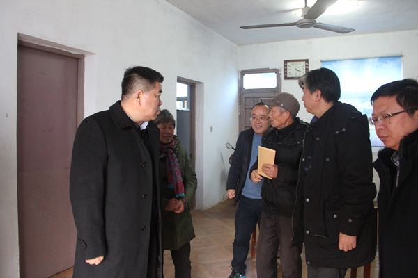 2月9日,集團公司黨委書記、董事長魏紅軍,工會主席佟曉廷一行到江心沙農場看望慰問困難職工,向他們送上集團公司黨委的親切關懷和新年問候?! ∥簳浺恍惺紫葋淼胶I尘游瘯щy職工蔡新娣家中