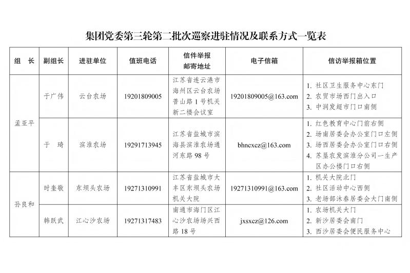 根據集團黨委關于巡察工作的統一部署,9月1日,集團黨委第三輪第二批次巡察完成進駐工作。黨委巡察組將對云臺農場黨委、濱淮農場黨委、東壩頭農場黨委、江心沙農場黨委開展常規巡察。被巡察農場黨委分別召開巡察進駐動員會。各黨委巡察組組長作動員講話,對深入學習貫徹習近平總書記關于巡視工作、“三農”工作重要論述和江蘇工作重要講話精神,認真落實集團黨委決策部署,扎實開展本次巡察工作提出要求。據悉,集團黨委巡察組將在被巡察農場現場巡察1個月左右,在此期間設立專門值班電話、郵寄信箱、電子信箱和信訪舉報箱等,主要受理反映被巡察農場黨委領導班子及其成員、下一級主要負責人以及關鍵崗位干部(含已離退休、已調離)問題的來信來電來訪,重點是關于違反政治紀律、組織紀律、廉潔紀律、群眾紀律、工作紀律和生活紀律等方面的舉報和反映。其他不屬于巡察受理范圍的信訪問題,將按規定由有關部門認真處理。巡察組每天電話受理時間為8:30—18:00,受理信訪時間截止到2025年9月28日。