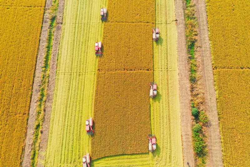 金秋十月,豐收季節。高空俯瞰江蘇省寶應湖農場,田間地頭,收割機來回穿梭,曬糧場,稻谷飄香,處處呈現如畫般的豐收美景。水稻收割完之后,旋耕機、播種機隨即“登場”,將一粒粒麥種播撒進田間,為來年豐收打下基礎。