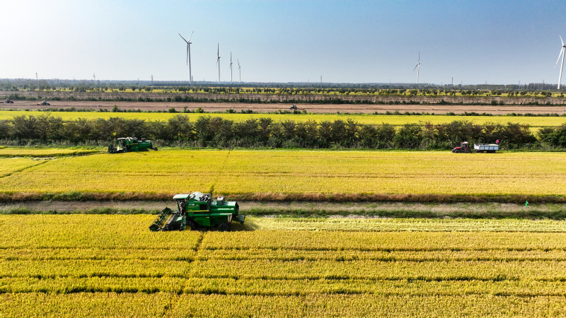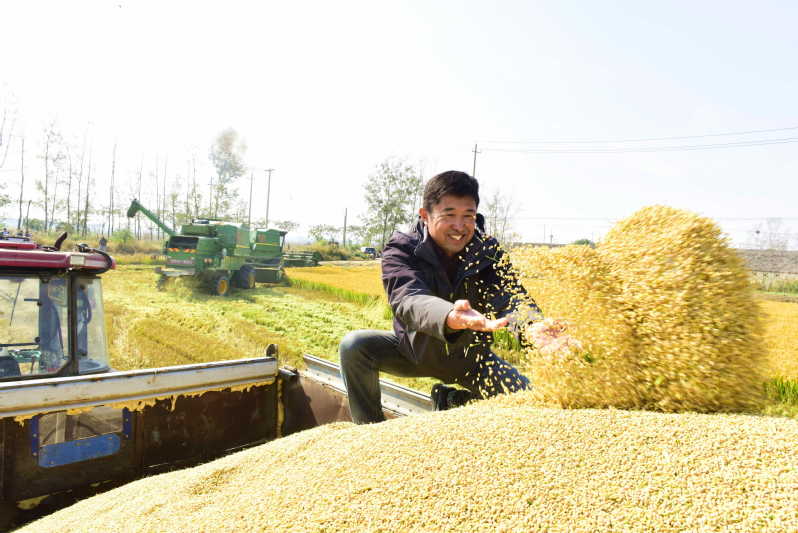 又逢一年水稻收割季,蘇墾農發淮海分公司沃野遍地“糧”辰美景。自10月21日大面積收割水稻以來,為確保在11月1日前將5.7萬畝水稻全部收割完成,該分公司投入了60多臺各類收割機突擊搶收,確保糧食顆粒歸倉。圖為望著滿倉的糧食農戶笑逐顏開。