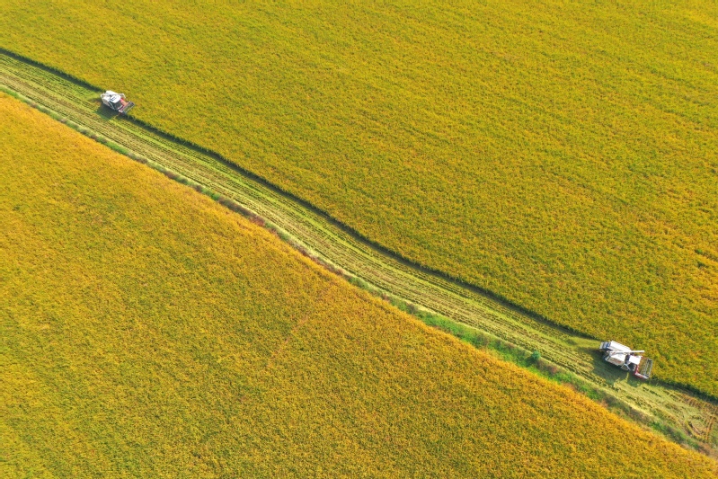 “開鐮了!豐收了!”10月17日上午10時,一臺臺聯合收割機駛向蘇墾農發新洋分公司新北生產區5大隊,金黃的水稻被大型機械收入“囊”中,新洋5.3萬畝水稻機收作業正式拉開序幕。今年“三秋”是集團公司第二次黨代會勝利召開后的第一個農忙,做好“三秋”工作意義重大,黨委班子成員靠前指揮,深入田間查看水稻收割情況。稻田接連成片,稻穗迎風擺動,收割機馬力全開、縱橫馳騁,收割、脫粒、裝車……一氣呵成,一派豐收的喜人景象。收割現場,蘇墾農發新洋分公司嚴格收割質量監督,把機械減損作為糧食增產的重點,加大收割質量檢查力度,減少收割損失,實現秋糧顆粒歸倉。“我們密切關注天氣情況和水稻成熟度,統籌安排,堅持質量第一,進度第二,努力做到成熟一塊收割一塊,穩步推進收割進度。”農業中心負責人介紹。蘇墾農發新洋分公司立足“前期‘揀’收、中期‘穩’收、后期‘搶’收”的原則,充分利用秋收早期溫度高,有利晾曬、烘干的條件,適時收、曬、烘,為秋播及時騰茬,確保11月6日前完成秋播田塊收割任務。面對不穩定天氣因素,蘇墾農發新洋分公司強化機械保障,本部準備收割機58臺套,運糧車53臺,另調度好26臺小型履帶式收割機,隨時應對突發